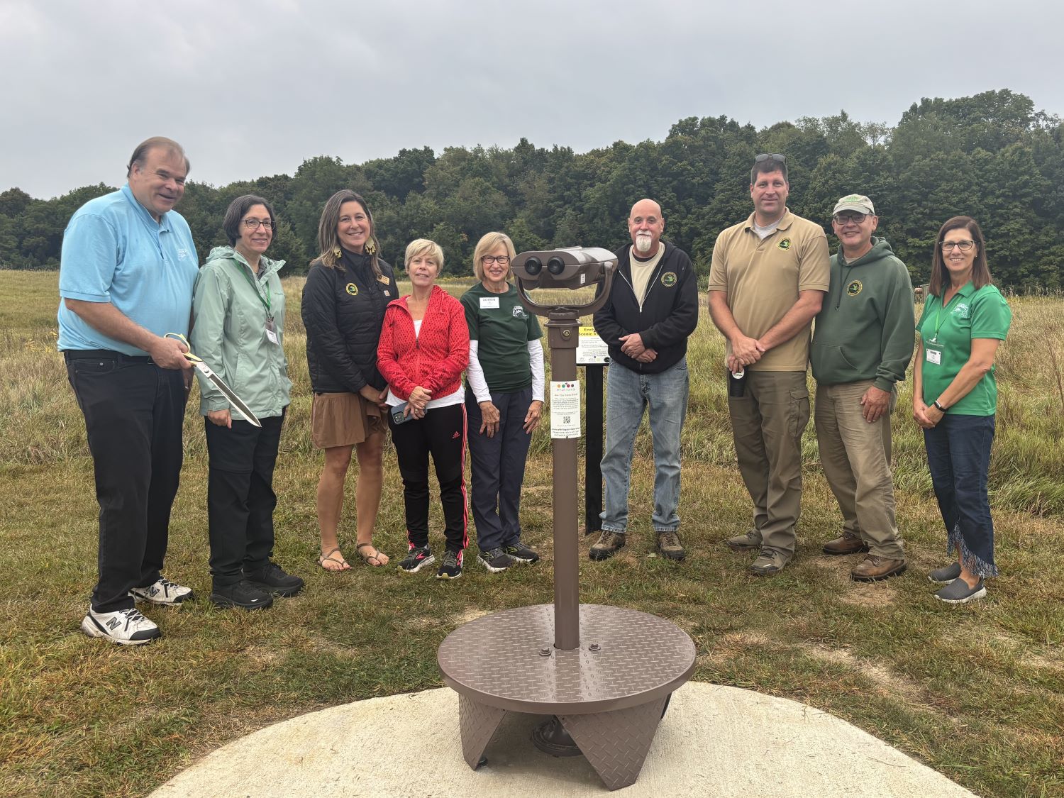 Park employees and members of the Friends of Maybury State Park celebrated the official ribbon-cutting of the two recently-installed EnChroma Viewfinders.