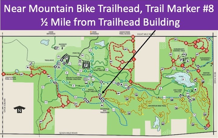 Celebrate the Season with a hike to the Friends of Maybury State Park Holiday Tree, now through January 4, 2026. The Tree ornaments were made by Maybury State Park community members and the Tree is located near Trail Marker #8 (black diamond 8). See map below.